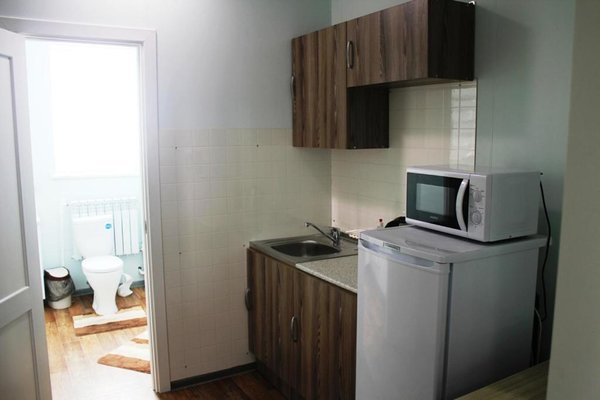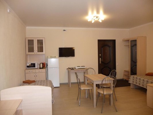 В каждом номере есть буфетная зона, в которой находится печь СВЧ, холодильник, чайник и кухонная посуда. В шаговой доступности находятся супермаркеты "ДИКСИ", "Пятерочка", гипермаркет "ДА".