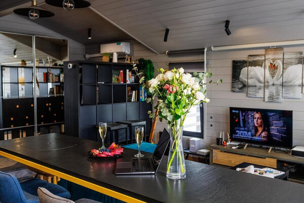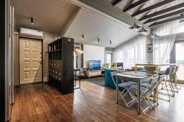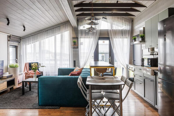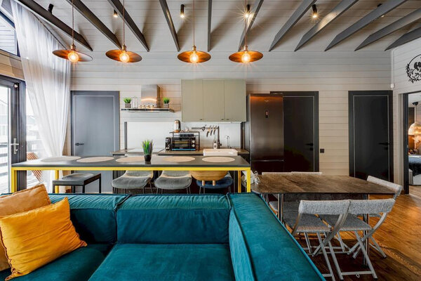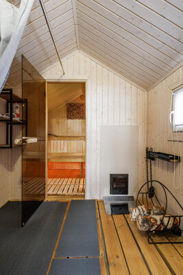 «House с баней Лес_Озеро_Дом» — идеальное место для побега от городской суеты и полного погружения в природу. Просторные, продуманные до мелочей интерьеры с современной мебелью, бытовой техникой и всем необходимым для комфортного пребывания созданы для вашего максимального расслабления. Вас ждут две уютные спальни, просторная кухня-гостиная с диваном-кроватью и отдельная детская комната с полутороспальным диваном. Два санузла и большая терраса обеспечат дополнительный комфорт.