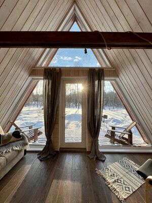 Уютный глэмпинг «Indie House» расположен в живописной деревне на берегу реки Нары. Два комфортабельных A-frame домика с панорамным остеклением предлагают гостям все удобства для отдыха в любое время года. В каждом домике есть спальня, полностью оборудованная кухня и санузел с душем. В 50 метрах от домиков протекает река, а из окон открываются захватывающие виды на окружающий лес. Просторы вокруг глэмпинга идеально подходят для спокойных прогулок. Размещение с домашними животными возможно по предварительной договоренности.