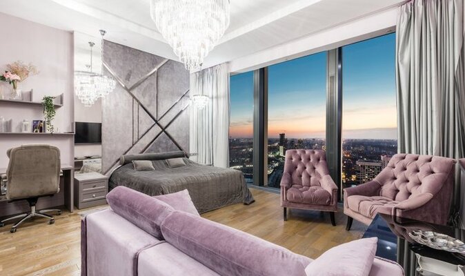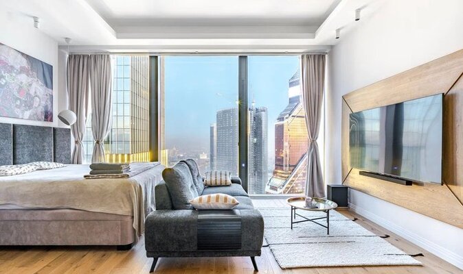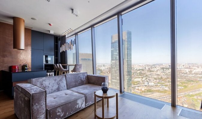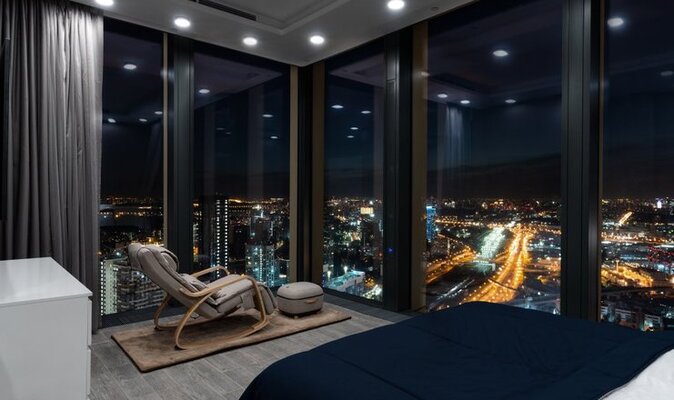 Роскошные апартаменты, расположенные в 95-этажном небоскребе с захватывающими панорамными видами на город. Просторные, светлые комнаты с современной мебелью обеспечат вам максимальный комфорт. Полное оснащение: телевизор, кондиционер, гладильные принадлежности, стиральная машина, Wi-Fi, кухня с холодильником, плитой, микроволновой печью, электрическим чайником, посудой и столовыми приборами.