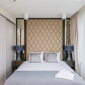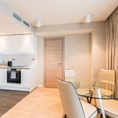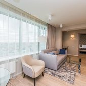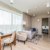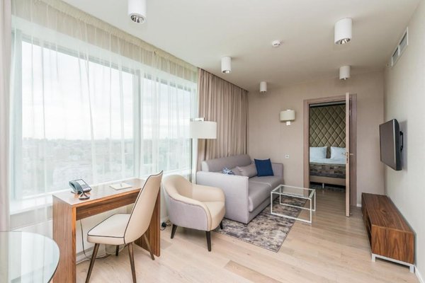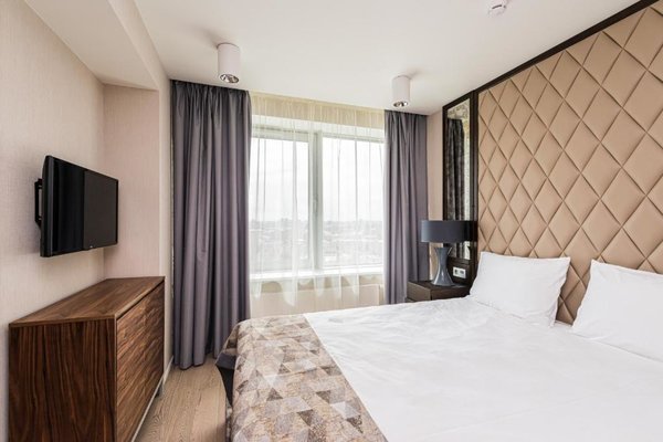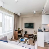 Номерной фонд представлен просторными и уютными номерами, интерьер которых выдержан в светлых оттенках. В каждой мини-квартире есть две комнаты, собственная кухня и санузел, так что можно почувствовать себя здесь как дома. Из техники можно воспользоваться кондиционером и телевизором. Из окон открывается панорамный вид на город. В индивидуальной ванной в распоряжении биде и фен.