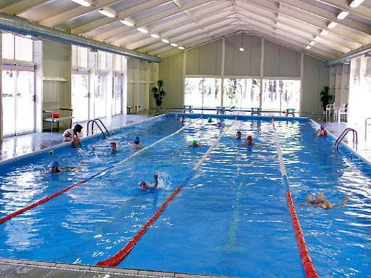 В санатории работает крытый подогреваемый бассейн. Дорожек – 4. Длина бассейна – 25 метров.