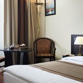 Номерной фонд гостиницы представлен номерами различного уровня от «Стандарт» до «Люкс» В самом дешёвом номере постояльцу гарантируется наличие корпусной мебели, вентилятора, холодильника, сейфа, телевизора. Санузел, который предусмотрен в каждом номере, оборудуется ванной, также в номере находятся халаты, тапочки, фен и туалетные принадлежности.