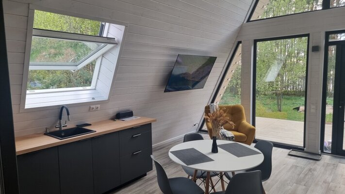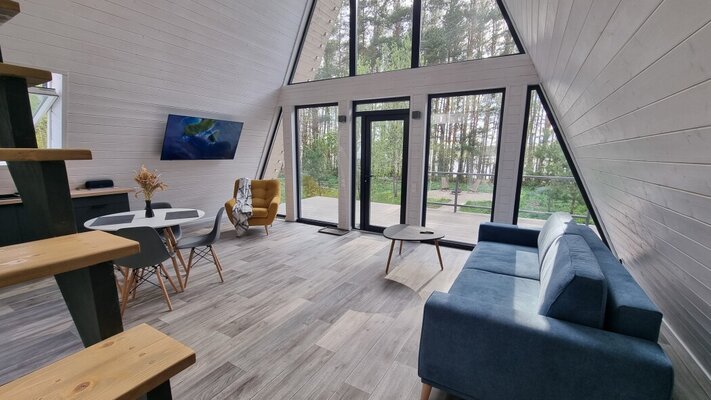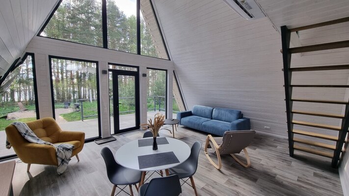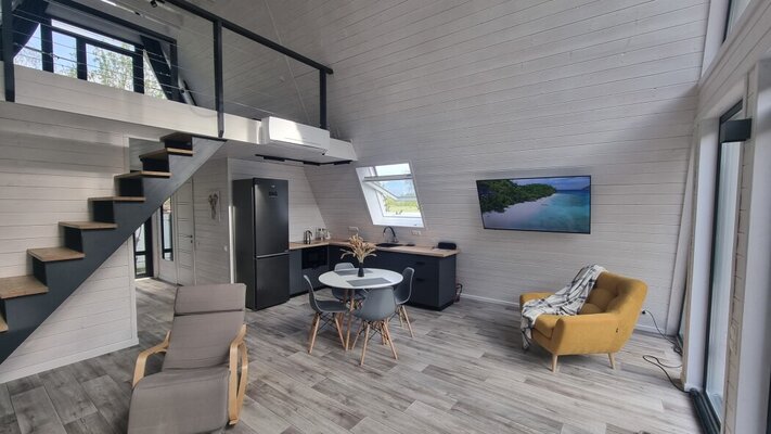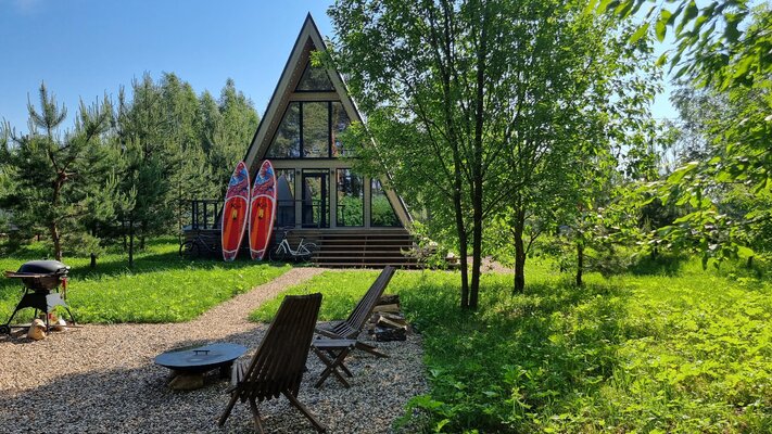 Отдохните в коттеджном комплексе «La Dacha» на берегу Можайского водохранилища! Стильные дома А-фрейм и Барнхаус с панорамными окнами, открывающими захватывающие виды на вековые сосны и водную гладь, обеспечат вам незабываемый отдых. Современное оборудование, включая теплые полы, гарантирует максимальный комфорт.