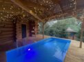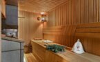 Баня-сруб из архангельской сосны. Размер парной 5,1 кв.м. Санузел с душевой. Сенная лежанка. Гостиная для отдыха. Выход в общественную зону с подогреваемым открытым бассейном и горячими чанами. TV + WI-FI.