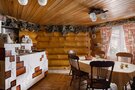 - гостиная с мягкой мебелью и декоративной печкой Емели;