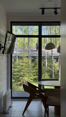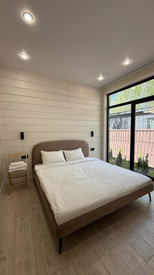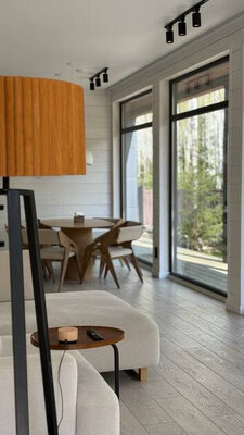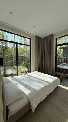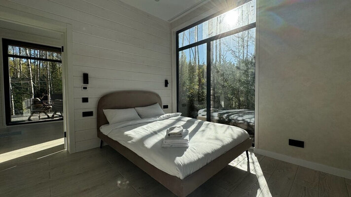Этот уютный дом, утопающий в зелени живописного леса, предлагает идеальное уединение и полное погружение в природу. К вашим услугам три отдельные спальни с удобными двуспальными кроватями, а также просторная кухня-гостиная, оборудованная всем необходимым для комфортного отдыха. Здесь вы найдете раскладной диван, Wi-Fi, Smart-TV, посудомоечную машину и систему теплого пола, создающую дополнительный уют. Начните каждое утро с чашки ароматного кофе в этой располагающей к отдыху атмосфере.