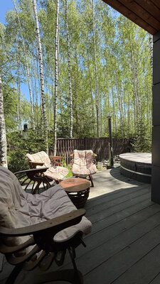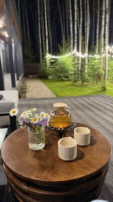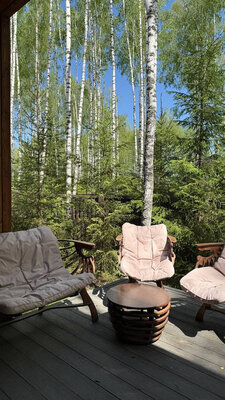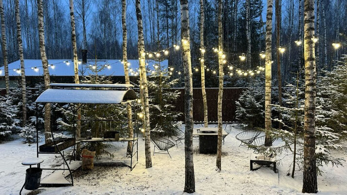 На шести сотках прилегающей территории вас ждут разнообразные возможности для досуга. Завтракайте на просторной террасе, приготовьте любимые блюда на мангале или проведите вечер у костра, любуясь звездным небом. Мягкий уголок с креслами – идеальное место для отдыха после активного дня. Добавьте к этому расслабляющие процедуры в сауне и целебные свойства чана, и ваш отдых станет по-настоящему восстанавливающим.