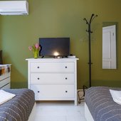 Номерной фонд представлен светлыми номерами, каждый из которых имеет современный интерьер, удобную мебель, собственную ванную комнату с душевой кабиной и жк-телевизор со спутниковыми каналами.