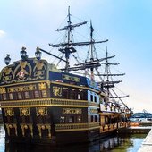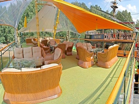 Гостям предлагается размещение на настоящем пиратском Фрегате «Черная жемчужина», исторический интерьер которого удачно сочетается с атрибутами нашего времени, необходимыми для полного комфорта. Шесть номеров «классик» выглядят как корабельные каюты, оснащенные всем необходимым для комфортного проживания Гостей. Здесь большие кровати с оригинальной подсветкой, кондиционеры, сейфы, шкафы для одежды. Каждый номер имеет отдельный выход на маленький балкончик, где можно увидеть скульптуру пирата или корабельную пушку. На фрегате есть Кают-компания (банкетный зал на 14-20 человек), камин, караоке, сауна.