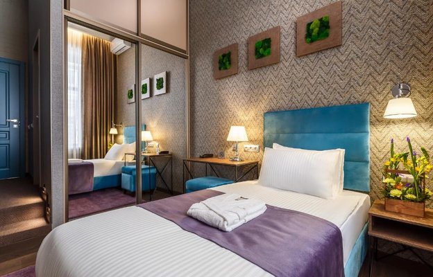 Отель располагает девятью номерами категорий «Стандарт» и «Люкс». Есть категории как для одноместного пребывания, так для размещения двоих и троих человек. В каждом номере, помимо основного набора мебели, есть просторный санузел с душем и феном, кондиционер, холодильник, сейф. Для комфорта каждому гостю предоставляются халат, полотенце, тапочки, гигиенические принадлежности. Минимальный чайный набор позволит насладиться чашечкой чая, не выходя из номера.