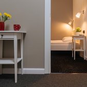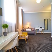 Для размещения предоставляются номера различной категории, оснащенные необходимой мебелью и техникой. В каждом размещена ванная с душем.