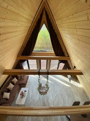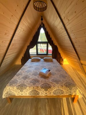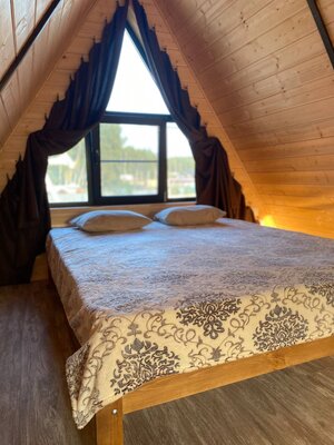 Дом-шалаш «Miframe» — это уютное двухэтажное гнездышко в подмосковной деревне Степыгино, окруженное собственным лесом. Внутри вас ждет комфортный отдых: просторная гостиная на первом этаже с двуспальным диваном, Smart TV, панорамными окнами и подвесными качелями-гамаком. На втором этаже — удобная спальня. Полы с подогревом, кондиционер и обогреватель обеспечат комфортную температуру в любое время года.