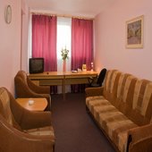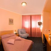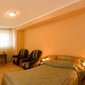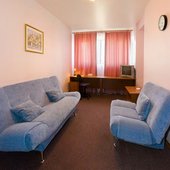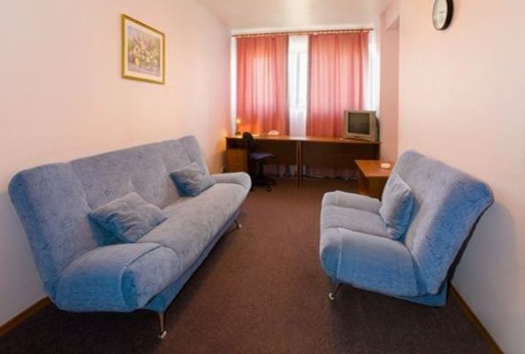 Для размещения постояльцам предоставляются комфортабельные номера различной категории, оборудованные прикроватной тумбой, столом, креслом, телефоном, телевизором, холодильником. В каждом есть ванная комната со всеми стандартными косметическими принадлежностями.