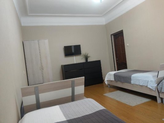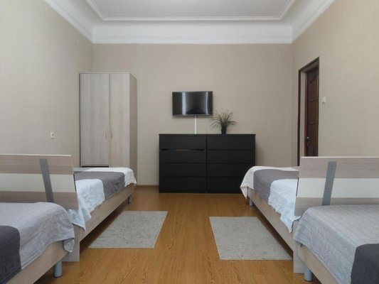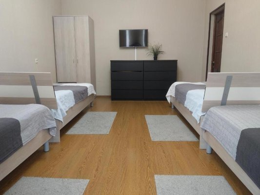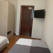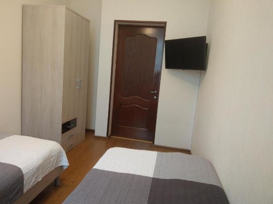 Предлагается размещение в двухместных номерах с современной отделкой. Они оснащены мебелью и техникой необходимой для комфортного проживания и полноценного отдыха. Здесь вы сможете набраться сил для нового дня. Общая ванная комната включает в себя бесплатные средства личной гигиены, полотенца, халат и фен.