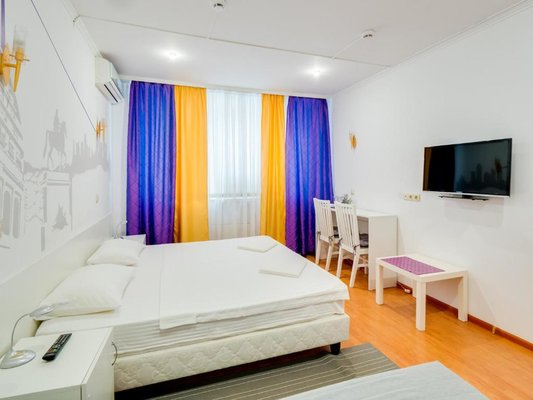Интерьер выполнен в классическом стиле и светлых тонах, что позволяет почувствовать домашнюю атмосферу. Все номера оснащены современной мебелью и техникой. Ванная комната укомплектована гигиеническими принадлежностями. Из окон открывается живописный вид на город.