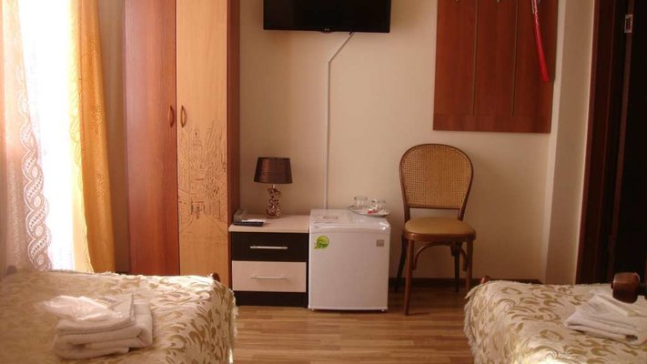 Для гостей столицы предоставлено 12 номеров различной категории, оборудованные кондиционером, телевизором и мини-баром. В ванной комнате душевая кабина, комплект полотенец, тапочки, халат и косметические принадлежности.