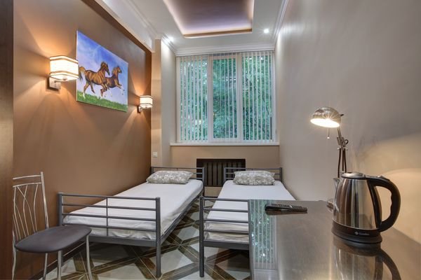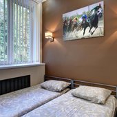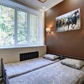 Для размещения гостей предлагаются номера разной вместимости от 2 до 4 человек. В каждом номере установлен телевизор и необходимый набор мебели, а также оборудована ванная комната.