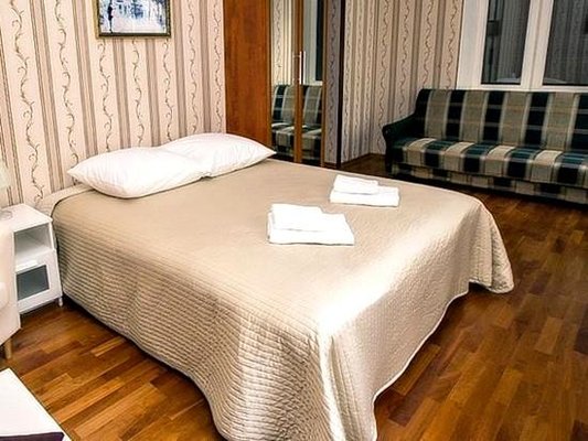 В оформлении просторных номеров выдержан строгий стиль. Они делятся на «стандартные», «семейные» и «полулюксы». Благодаря стильной меблировки, кондиционеру и большим окнам в них создается домашняя атмосфера, что очень важно для хорошего отдыха.