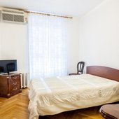 В номерном фонде 5 двухместных номеров с двуспальной кроватью и общей ванной комнатой. Также помещение оборудовано телевизором и кондиционером, а из окон открывается красивый вид на Триумфальную Арку.