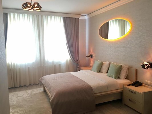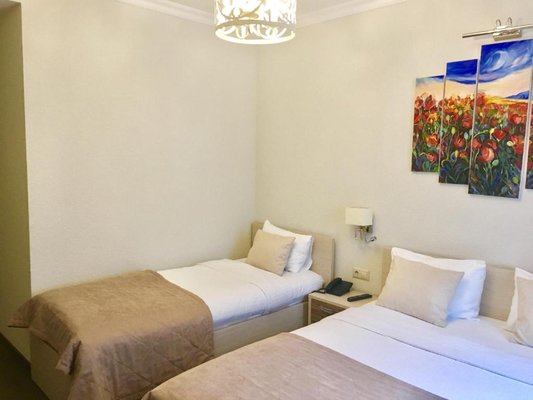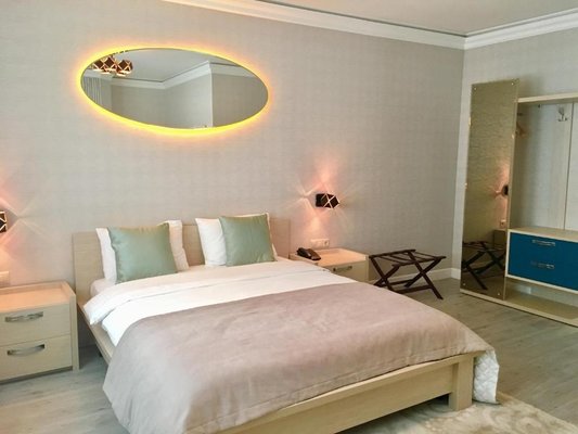 Отель располагает десятью номерами, которые оборудованы всем необходимым. Все выполнены в светлых тонах и максимально подготовлены для комфортного и уютного отдыха. Также «Набат Палас» готов предложить новобрачным «Свадебный номер».