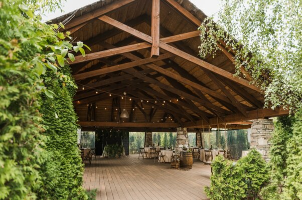 На территории «Таежного» вас ждут не только живописные локации, но и полный спектр услуг для вашего мероприятия. К вашим услугам просторный банкетный зал с каменными сводами и элементами старинного декора, рассчитанный на 40 гостей, профессиональное сервисное сопровождение, очаровательные уголки для свадебной фотосессии, уютная веранда, фуршетная беседка, зона барбекю и собственный мини-пляж у озера.