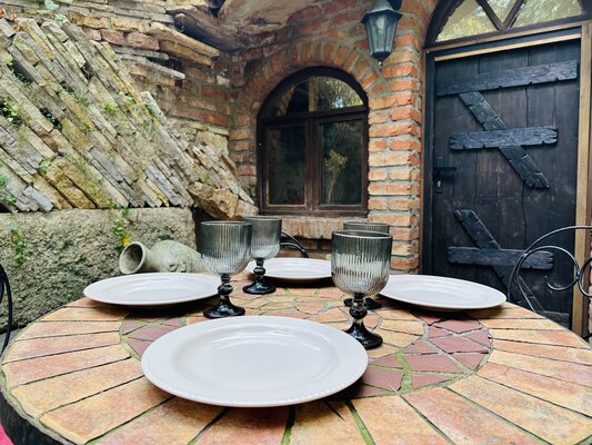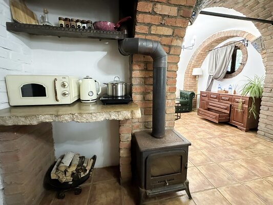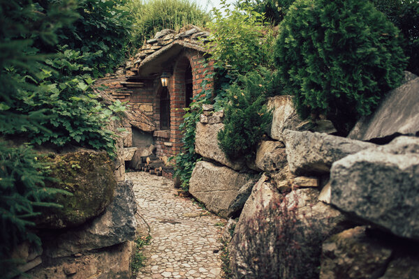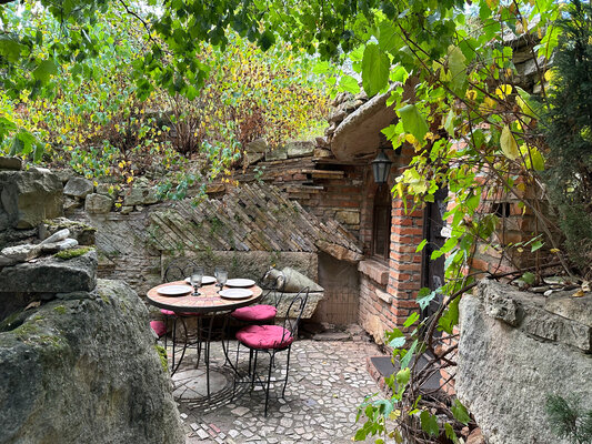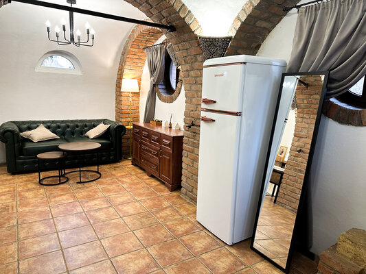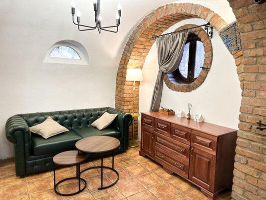 Стильное помещение с круглыми каменными сводами и «старинными» деталями интерьера напоминает одно из миниатюрных строений деревни «Хоббитон», места съемок «Властелина колец».