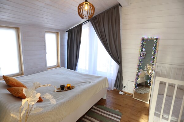 Особенностью дома являются три просторные комнаты, способные разместить до 6 человек, каждая из которых скрупулёзно оформлена и оснащена всем необходимым для удобства. Вас ждут удобные кровати, просторные шкафы для вещей, оборудованная кухня и современные ванные комнаты.
