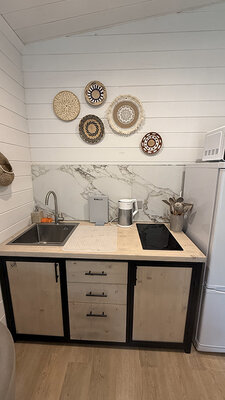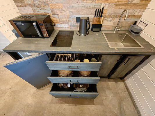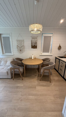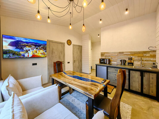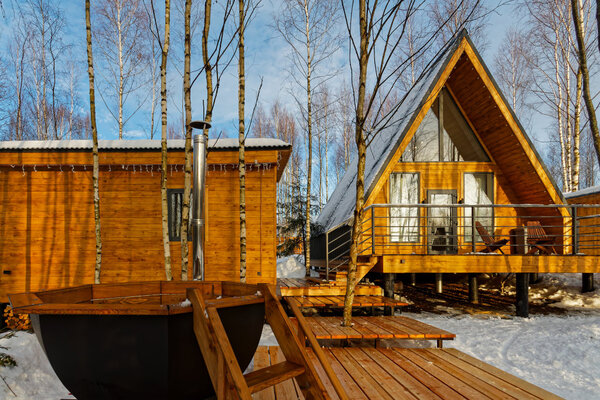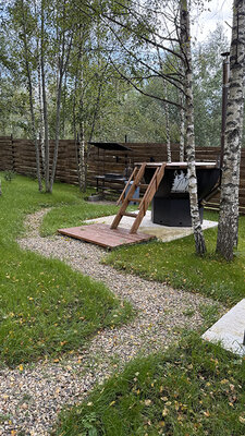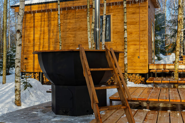 У каждого домика свой банный чан с подогревом на открытом воздухе, где вы можете расслабиться и попариться, как в холодное время года, так и летом, прохладными вечерами.