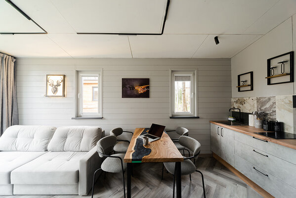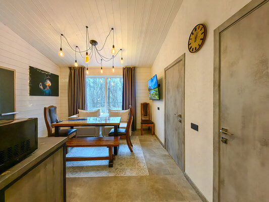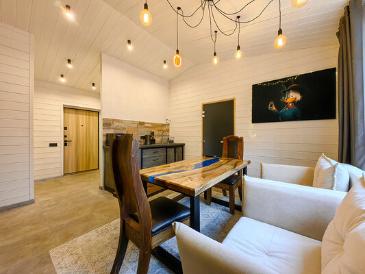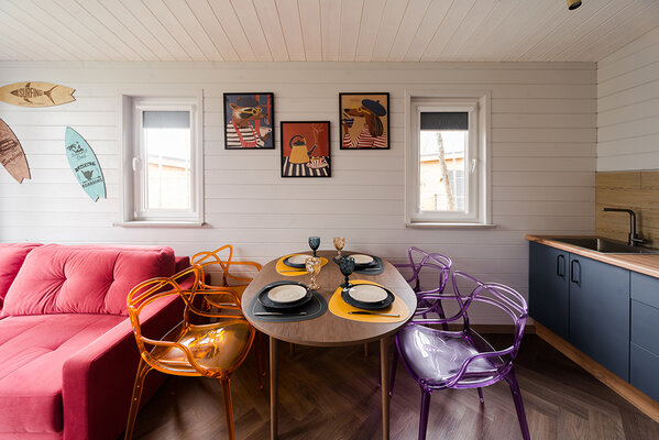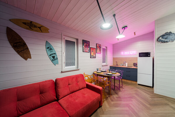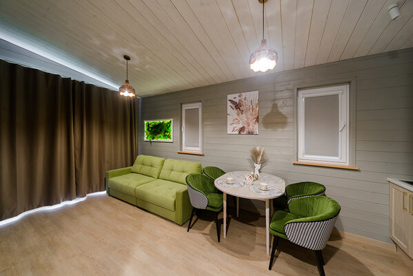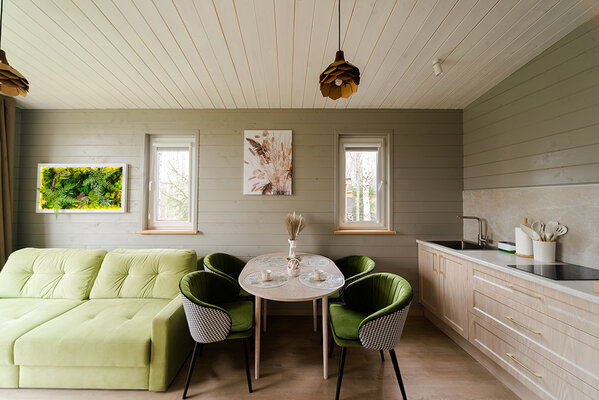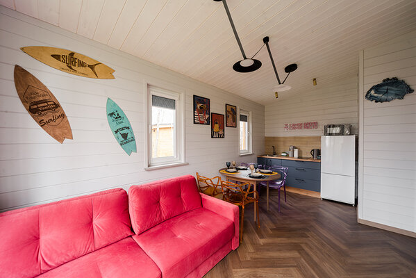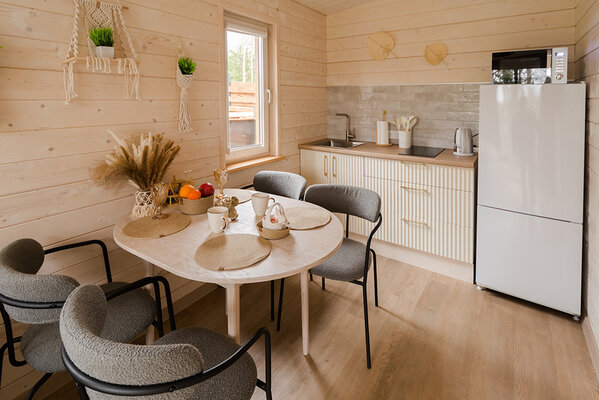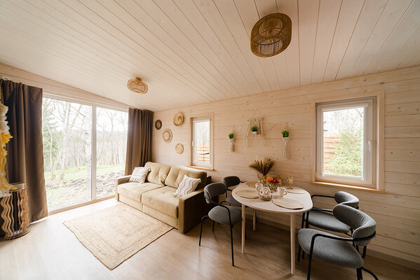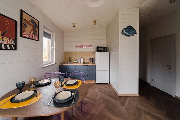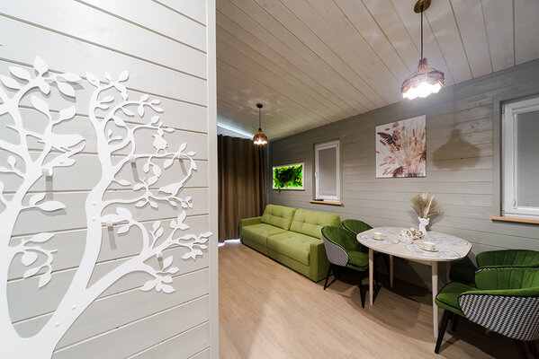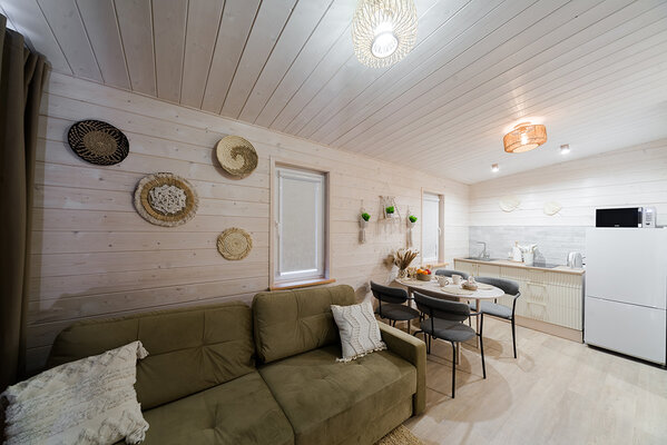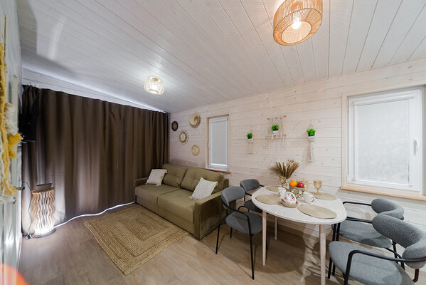 Откройте для себя райский уголок природы в глэмпинге «My little forest». Вас ждет незабываемое погружение в атмосферу умиротворения. Уютные светлые домики площадью 45 м² созданы для комфортного семейного отдыха или душевных встреч с друзьями. Спальня на втором этаже и удобный раскладной диван в гостиной с кухней позволят комфортно разместиться компании из четырёх человек. К вашим услугам бесплатный Wi-Fi, парковка, личная терраса с мангалом, а также возможность расслабиться в собственной бане или банном чане. Мы рады видеть и ваших четвероногих друзей — в «My little forest» возможно размещение с питомцами.
