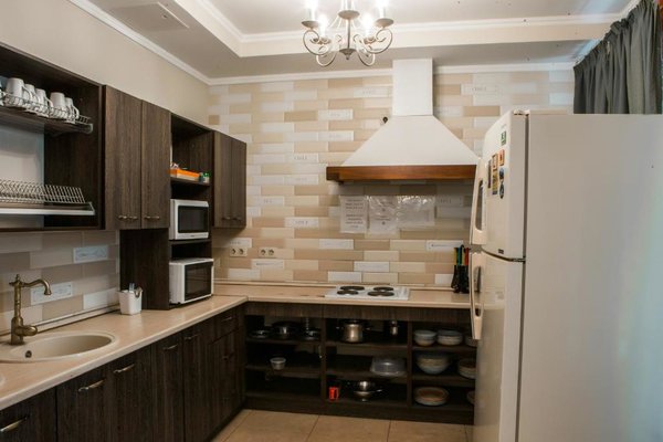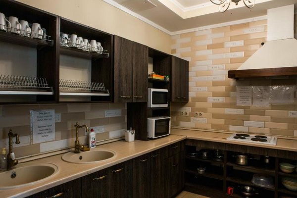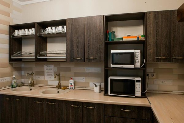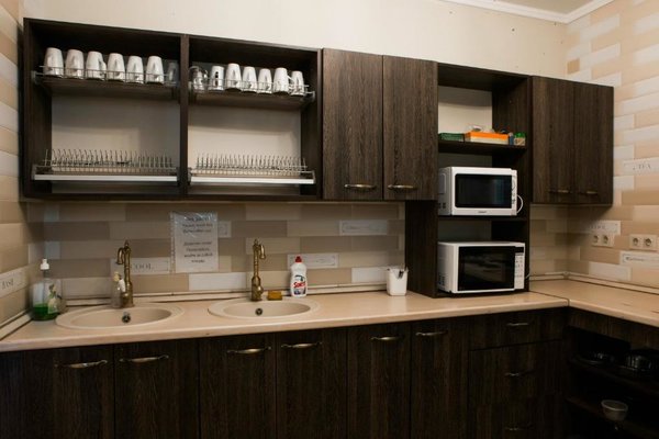Гости могут самостоятельно приготовить домашние люда или разогреть еду на общей кухне. Также, рядом находится кафе и ресторан.