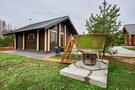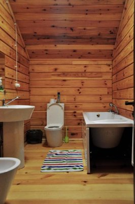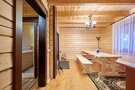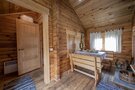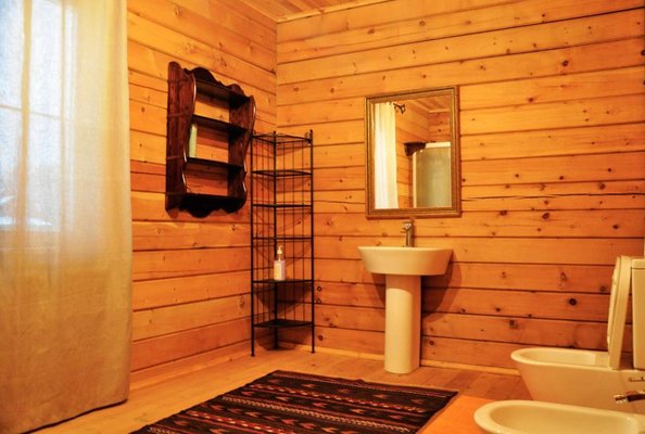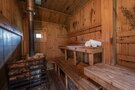 Просторная сосновая баня, рассчитанная на восемь-десять человек, с парилкой, душем и зоной отдыха. Гости могут наслаждаться подогреваемым чаном и расслабляться в мангальной зоне на свежем воздухе.