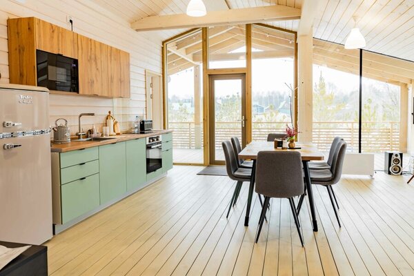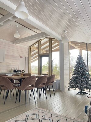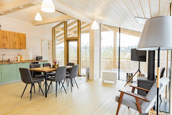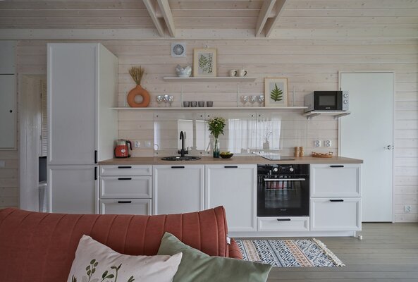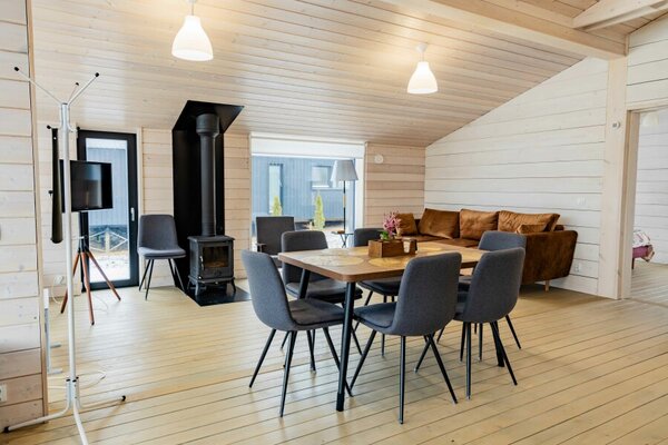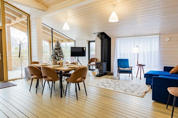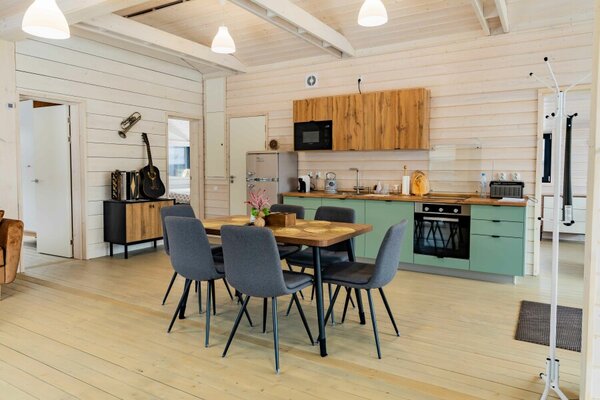 Уютные дома оснащены всем необходимым для комфортного отдыха: Smart TV, посудомоечной и стиральной машинами, духовкой, плитой, холодильником, кофемашиной, полным комплектом посуды, феном, утюгом и высокоскоростным интернетом. Постельное белье, полотенца и необходимые средства гигиены предоставляются.