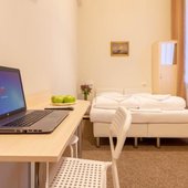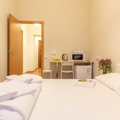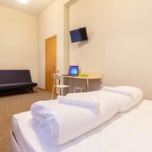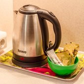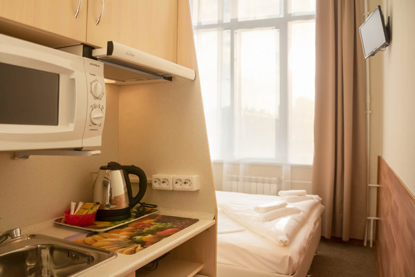 В каждом номере есть набор посуды, электрочайник, холодильник и микроволновая печь, которые помогут организовать перекус. Также в пешей доступности работают заведения общественного питания на любой вкус.