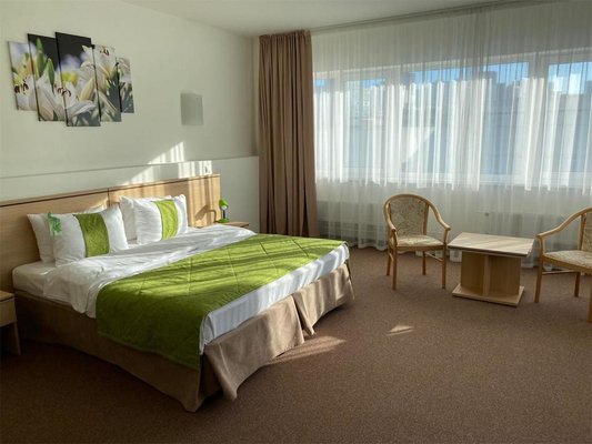 Гостиница предлагает к заселению 61 номер, оформленный в классическом стиле с преобладанием светлых тонов. Каждый из них укомплектован самой необходимой мебелью для комфортного пребывания. В категории «апартаменты» есть гостевая зона. В ванной комнате Вы найдете набор туалетных принадлежностей, тапочки и полотенца.