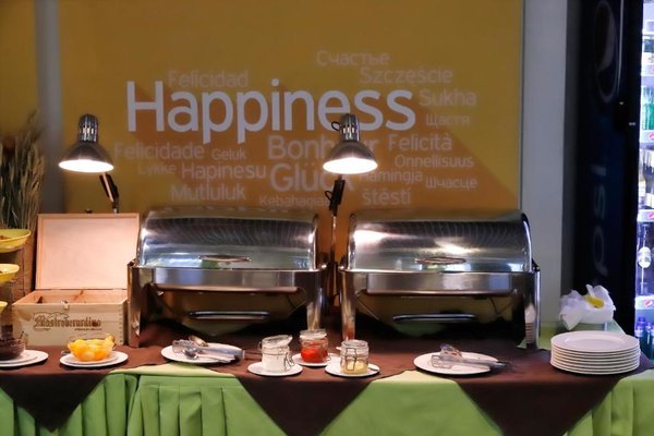 На территории гостиницы работает ресторан. В меню разнообразные салаты, горячие и холодные блюда, напитки.