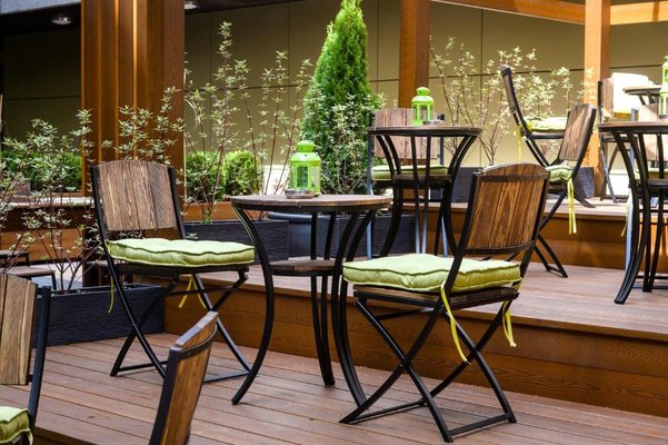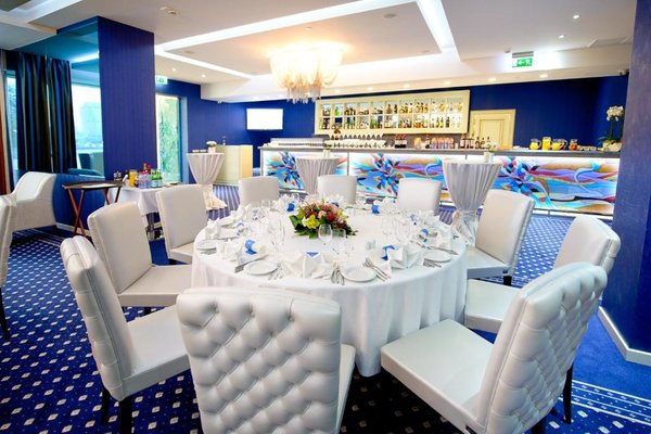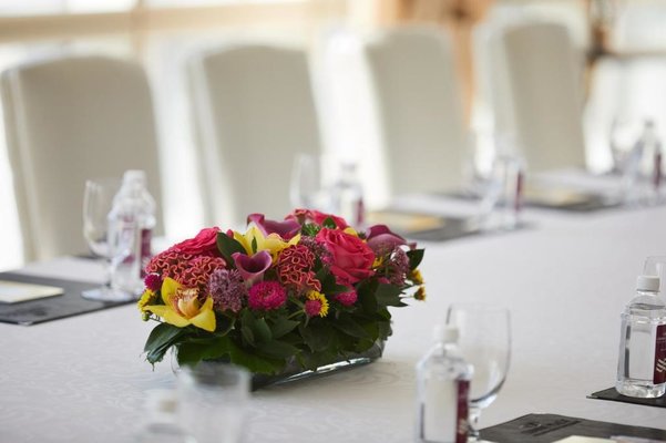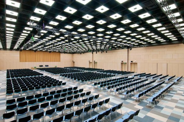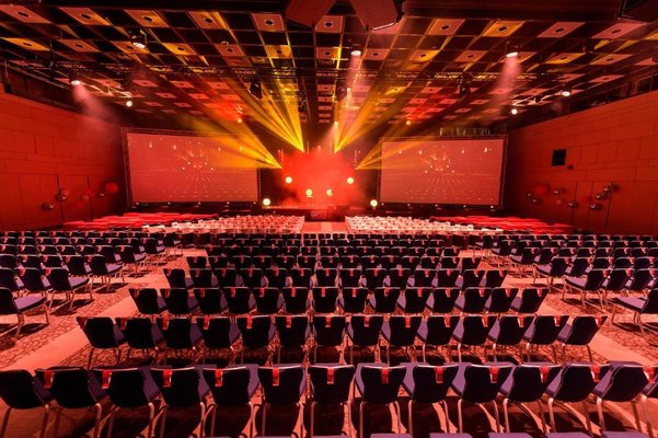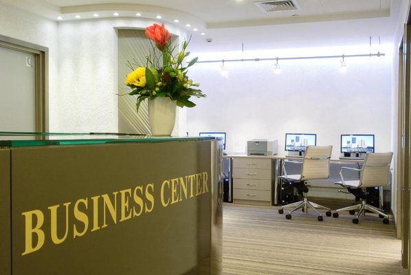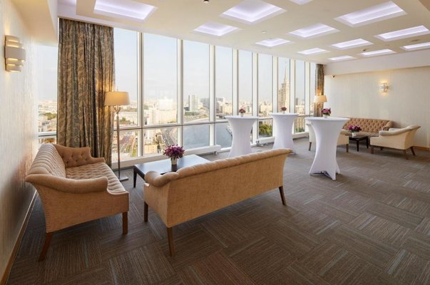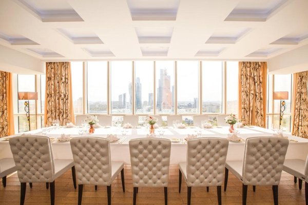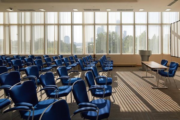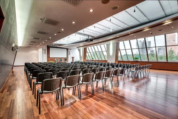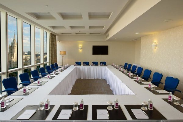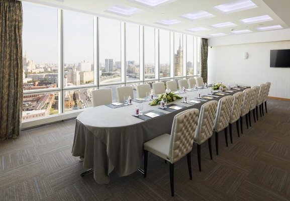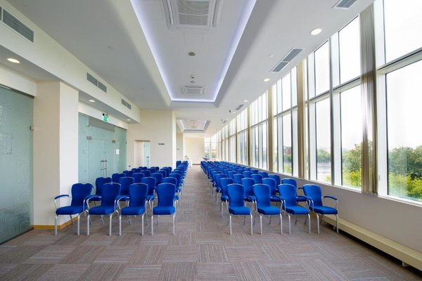 В здании находится конференц-комплекс, состоящий из нескольких залов. Из окон открывается панорамный вид. Возможна любая расстановка мебели.