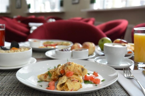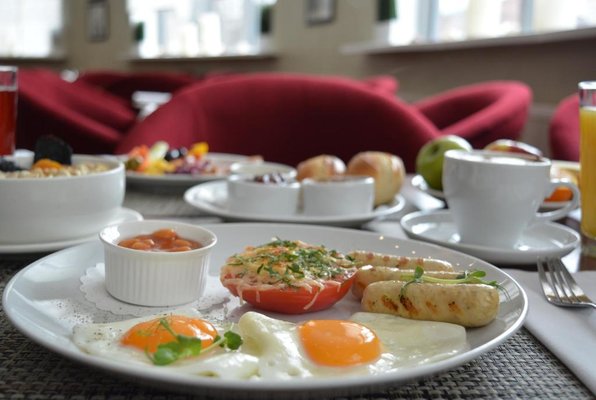 В отеле работает ресторан, где по меню можно заказать блюда русской и европейской кухонь. Здесь же сервируются сытные завтраки в формате «шведский стол».