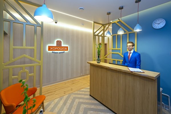 Отель «Хорошов» находится в Хорошевском районе города Москвы, в 8 минутах пешком от станции метро «Полежаевская». Заселение возможно в любое время, поскольку стойка регистрации работает круглосуточно.
