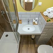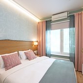 Номерной фонд представлен различными категориями, которые обустроены современной техникой и необходимой мебелью. В ванной комнате установлен стандартный набор сантехники, прилагается комплект полотенец и гигиенические принадлежности.