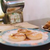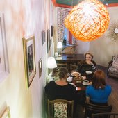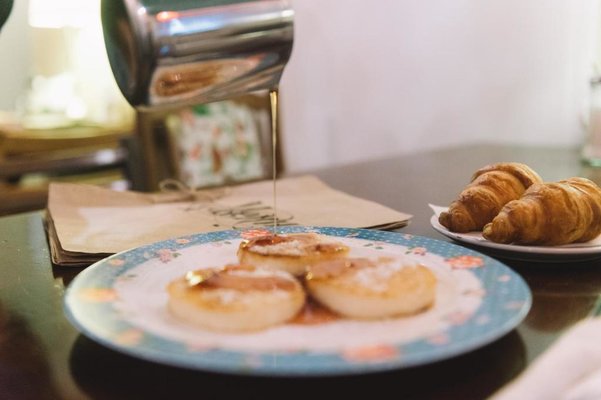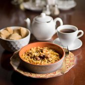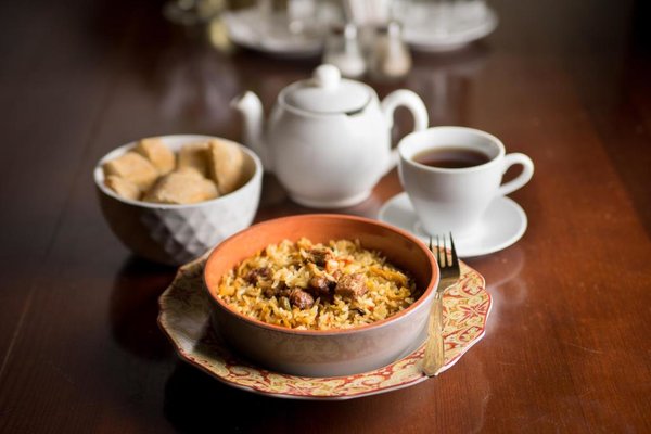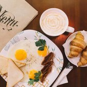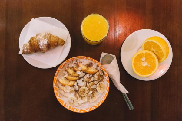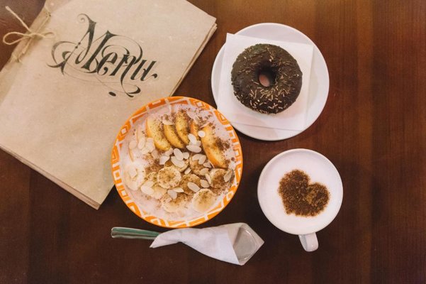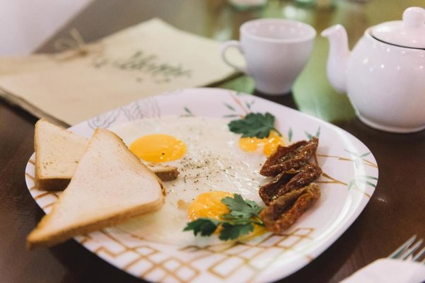 На территории гостиницы есть ресторан, в котором гости могут отведать различные блюда. На расстоянии не более ста метров есть несколько заведений питания ("Фермербуфет", "Палео", Кафе-кальянная "Бородачи", "Иверия"), с разнообразной кухней.