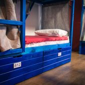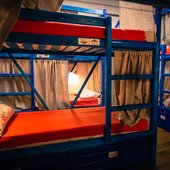 Номерной фонд представлен двухместными номерами и общими комнатами с двухъярусными кроватями. Лаконичное оформление каждого из них создает чувство покоя и комфорта. Из числа удобств стоит отметить наличие личной лампы, розетки, шкафчика для вещей с замком.