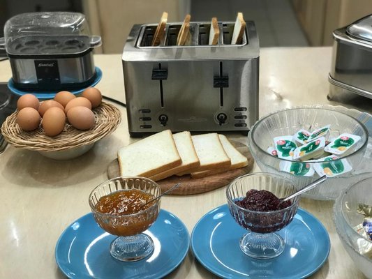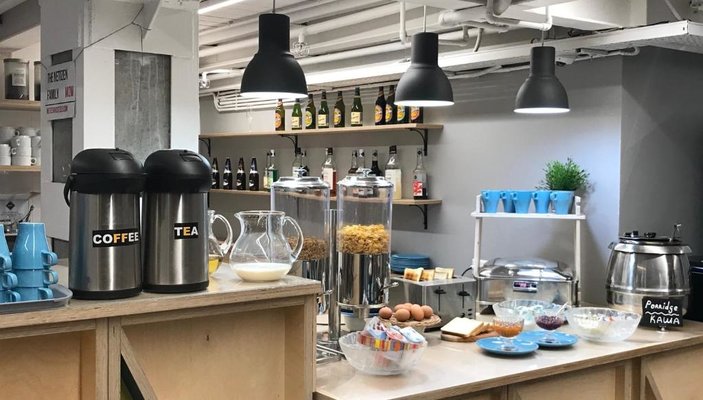В обеденной зоне гости всегда могут воспользоваться общей посудой, кулером/бойлером и бытовыми приборами ( микроволновой печью, тостером, яйцеваркой).