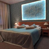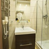 Горячая вода подается из котла в каждом номере, поэтому ее может не хватать, ремонт в номерах уже несвежий, хотя и чистенько.