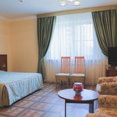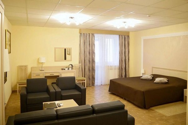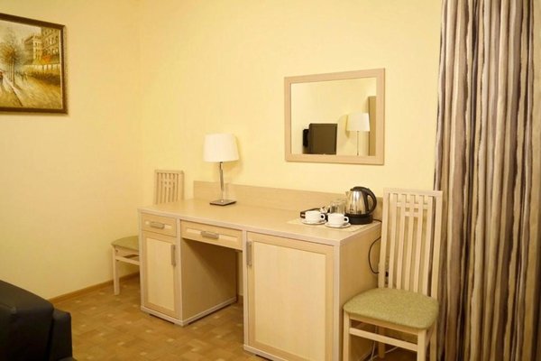 Рядом с гостиницей расположены: итальянский ресторан, салоны красоты, парикмахерские, два торговых центра и несколько продуктовых магазинов. Все номера, от бюджетного «Эконом» и до «Гранд Люкс», полностью соответствуют европейским представлениям делового человека об уютной и комфортабельной гостинице.