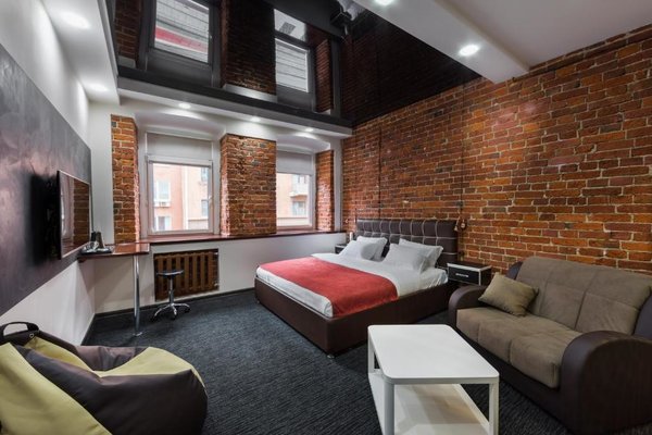 Интерьер выполнен в стиле "Лофт", что позволяет почувствовать уютную атмосферу при размещении. Все номера оснащены современной мебелью и техникой. Ванная комната укомплектована гигиеническими принадлежностями. Из окон открывается живописный вид на город.