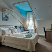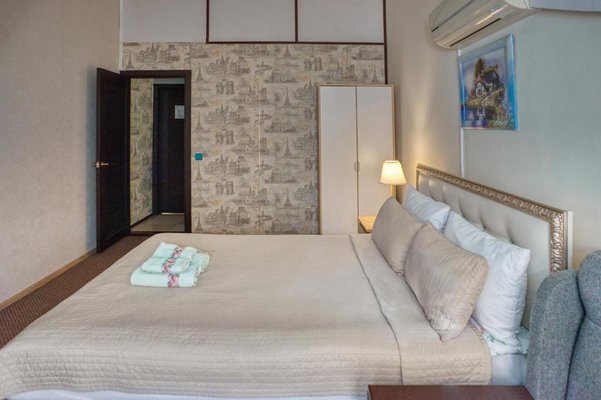 Изящно оформленные номера подготовлены для проживания отдыхающих. В числе удобств: эргономичная мебель, современная техника, собственная ванная комната, полотенца. Везде доступен беспроводной скоростной интернет. Ежедневно осуществляется качественная и тщательная уборка.