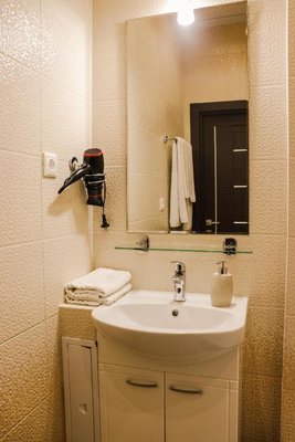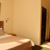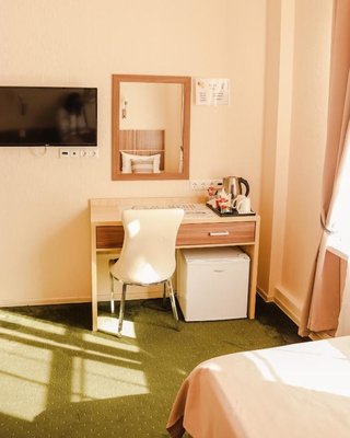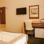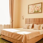 Для проживания доступны номера в нескольких категориях. В комнатах выполнен современный ремонт в спокойных цветах, для удобства отдыхающих есть удобные спальные места, прикроватные тумбы, рабочее место, небольшой холодильник, телевизор, пространство для хранения вещей, персональная душевая.