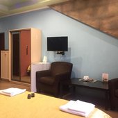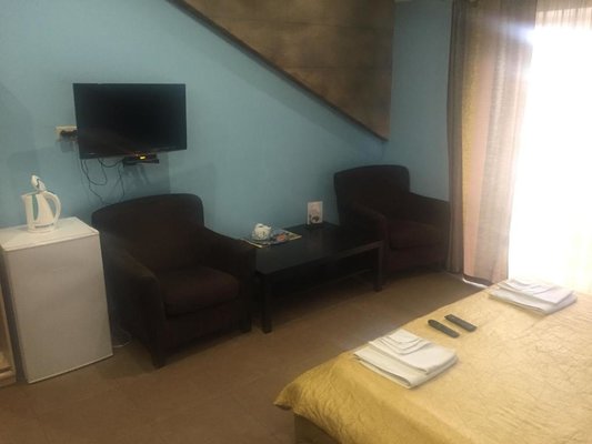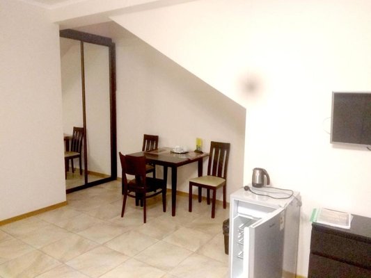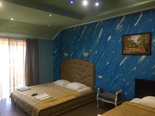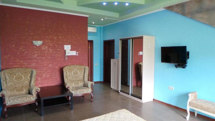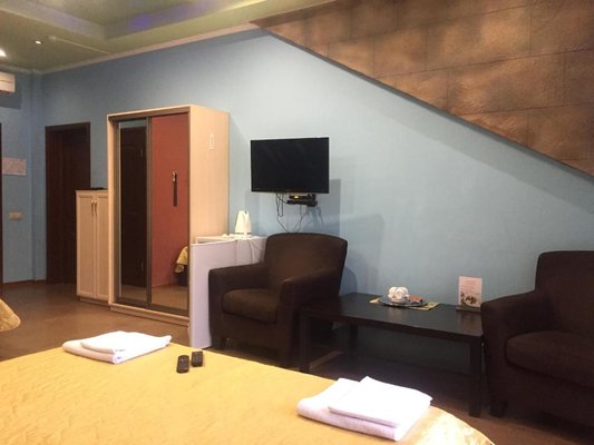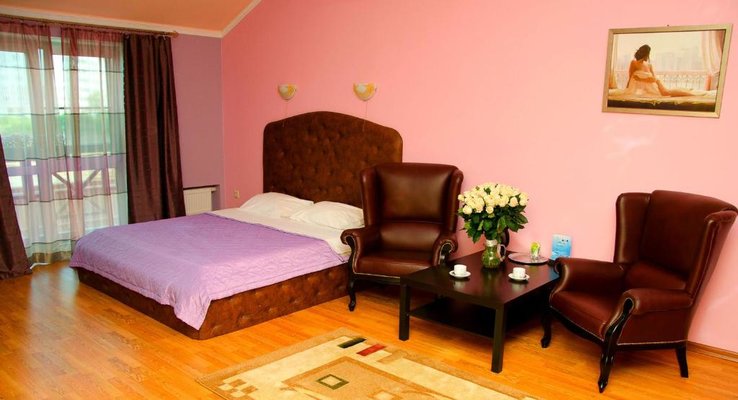 Гостям отеля представлены эксклюзивное оформление интерьера и высочайшее качество обслуживания персоналом. В каждом номере отеля имеется удобная мебель, подогреваемый пол, персональные тапочки и халаты, интерактивное кабельное телевидение, Wi-Fi, в номерах расположенных на втором этаже уютные балконы с прекрасным видом. Четыре номера оборудованы боксом для индивидуальной парковки транспортного средства, из теплого гаража можно сразу подняться в номер.