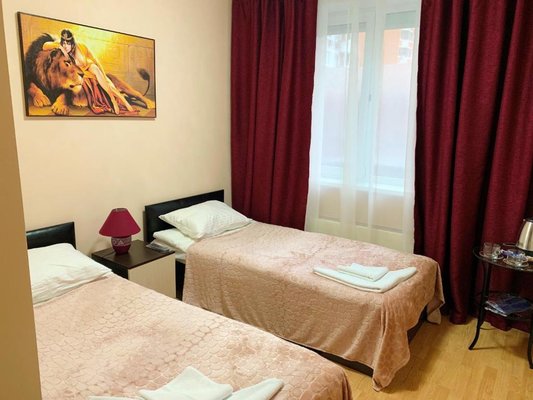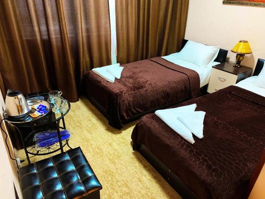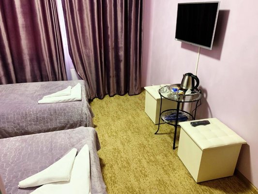 В номерах имеется кровать с матрасом, мебель, телевизор и стол. В ванной комнате душ, раковина, туалет, а так же средства ежедневной гигиены для каждого гостя. Регулярно персонал проводит влажную уборку.